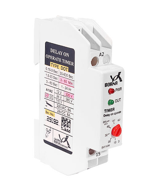 تایمر تاخیر در وصل برنا الکترونیک با سنجش زمان پس از وصل برق بصورت دقیق تجهیزات را بر اساس زمان تنظیم شده توسط کاربر کنترل می کند. این محصول قابلیت انتخاب زمان از ۵٪ تا ۱۰۰٪ رنج را دارد. که در رنج های زمانی 30 ثانیه، 60 ثانیه و 60 دقیقه ارائه می شود.
