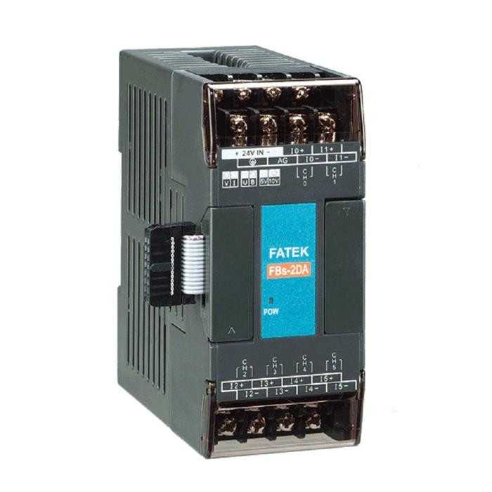 در کارت توسعه FATEK-FBs-2DA دو خروجی آنالوگ با دقت 14BIT و بصورت هم قطبی و هم غیرقطبی و هم ولتاژی و هم جریانی که البته بوسیله تغییر جای جمپر ها قابل تغییر است وجود دارد و حداکثر دقت ولتاژی FATEK-FBS 2DA ، 0.3mV (5V/16384) است و حداکثر دقت جریانی آن 0.61μA (10mA/16384) میباشد و همچنین از سمت راست پی ال سی به آن اضافه میشود و از سمت چپ خود به کارت های توسعه دیگری نصب میشود همچنین این ماژول احتیاجی به منبع تغذیه سوچینگ جداگانه ایی ندارد.